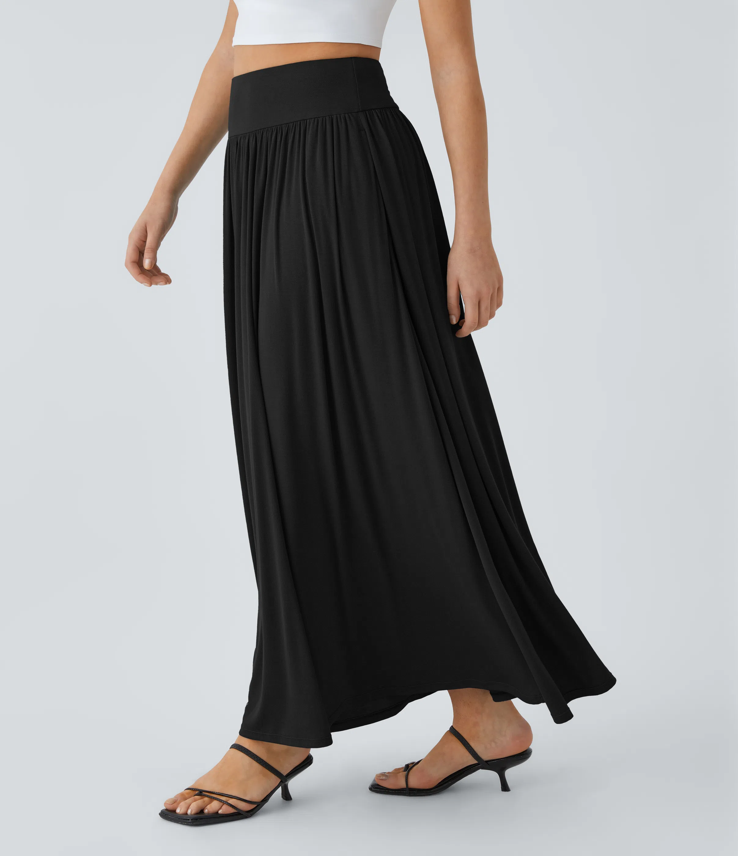 Ribbed High Waisted Pocket Flare Flowy Maxi Casual Skirt