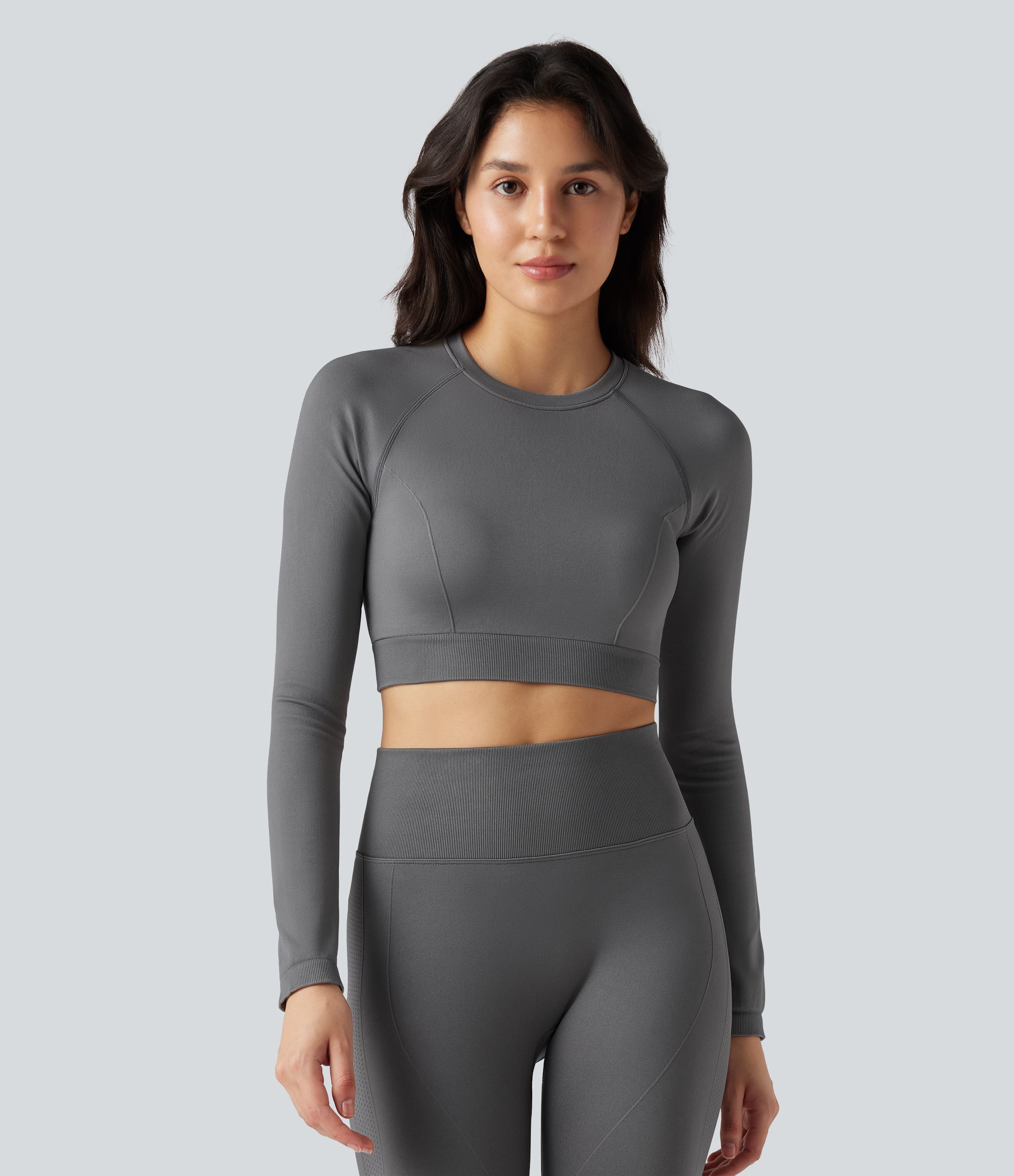 Seamless Flow Round Neck Long Sleeve Cropped Yoga Sports Top