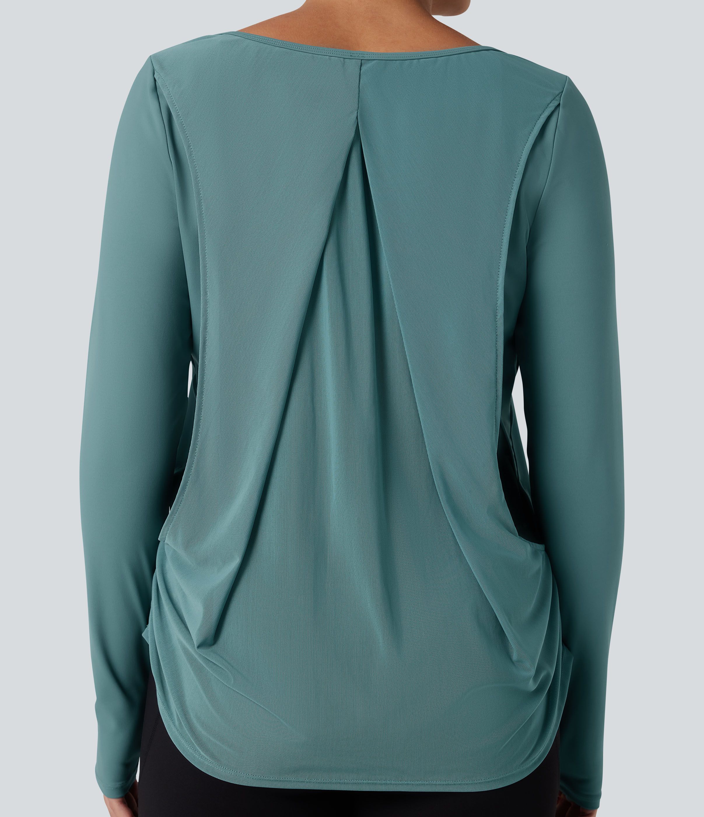 SoftlyZero™ Airy Long Sleeve Thumb Holes Contrast Mesh Cut-out Yoga Sports Top-UPF50+