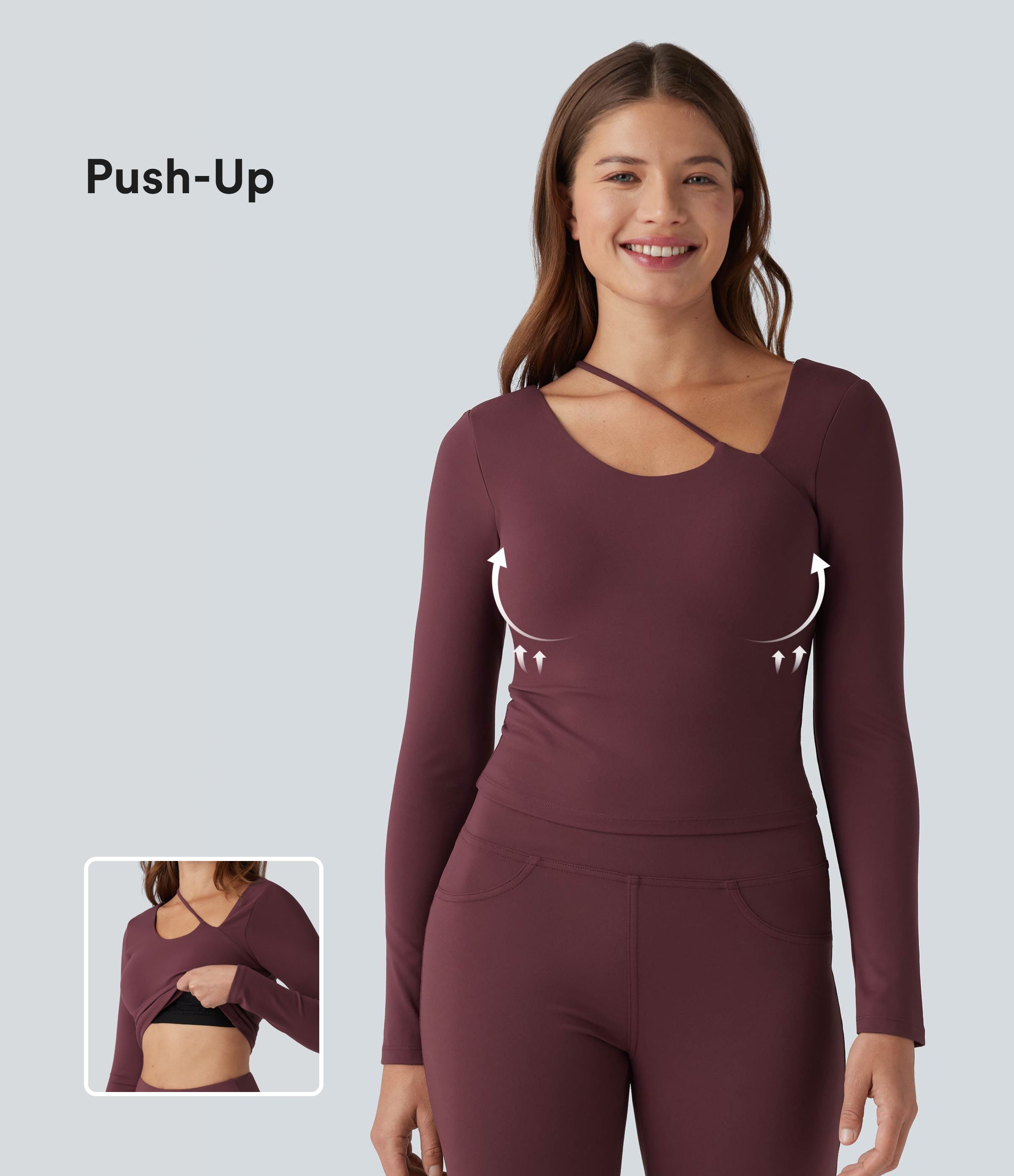 SoftlyZero™ Plush Asymmetric Neck Push-Up Long Sleeve Yoga Sports Top