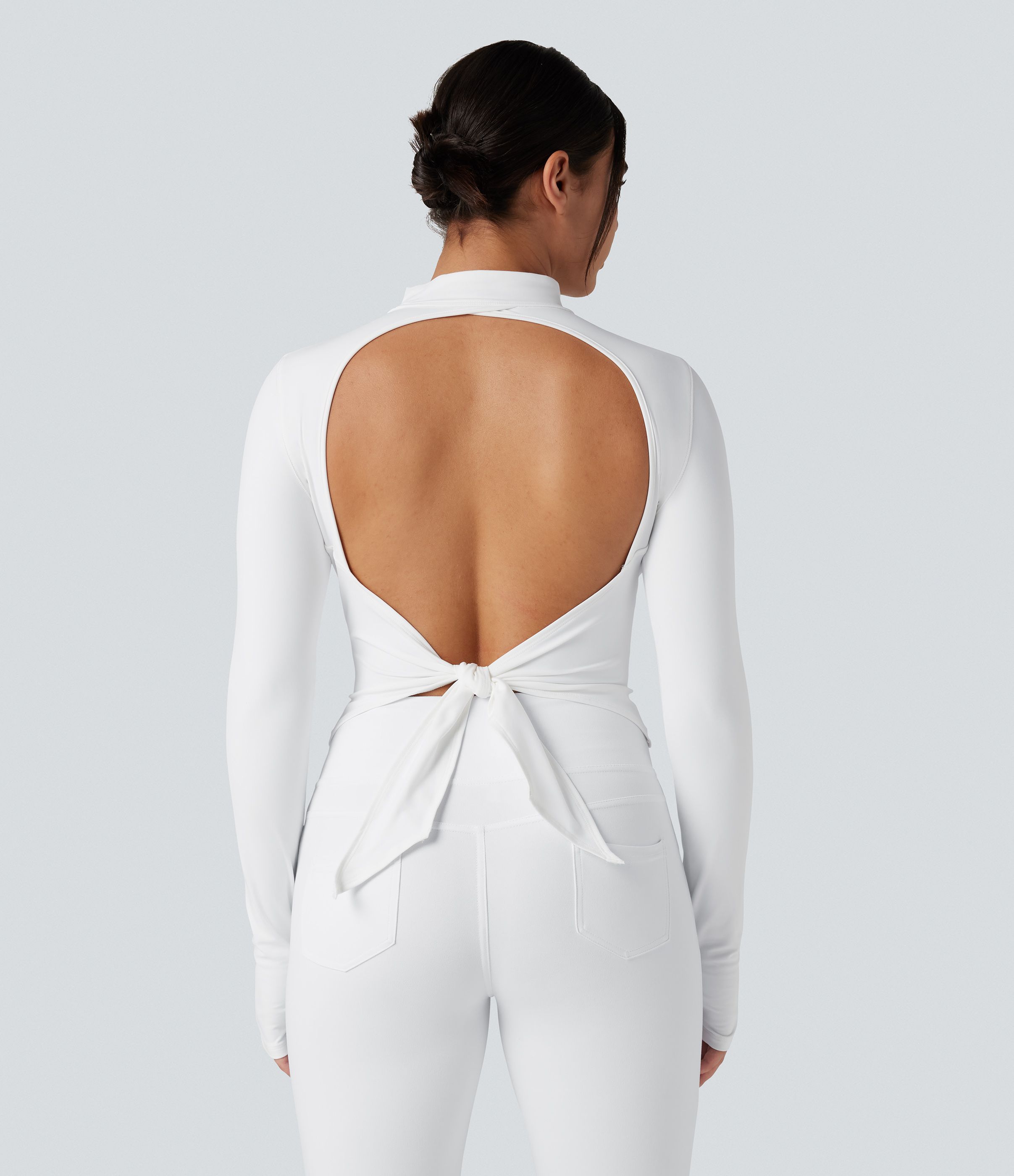 SoftlyZero™ Plush Mock Neck Long Sleeve Thumb Hole Tie Back Yoga Sports Top