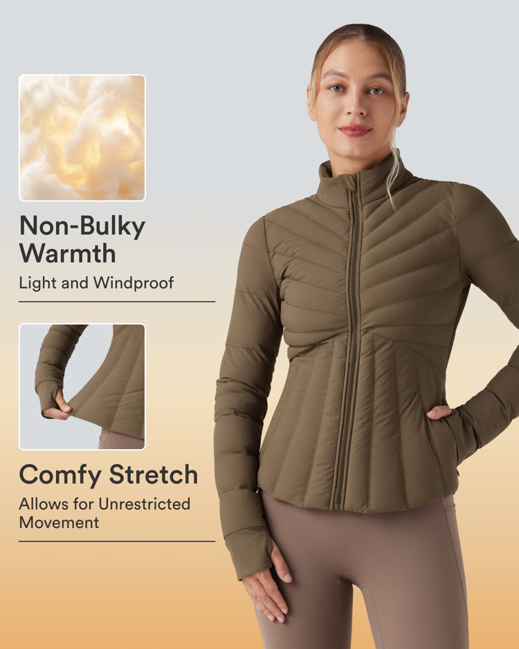 PuffFlex Stand Collar Thumb Holes Stretchy Workout Padded Jacket with Pockets