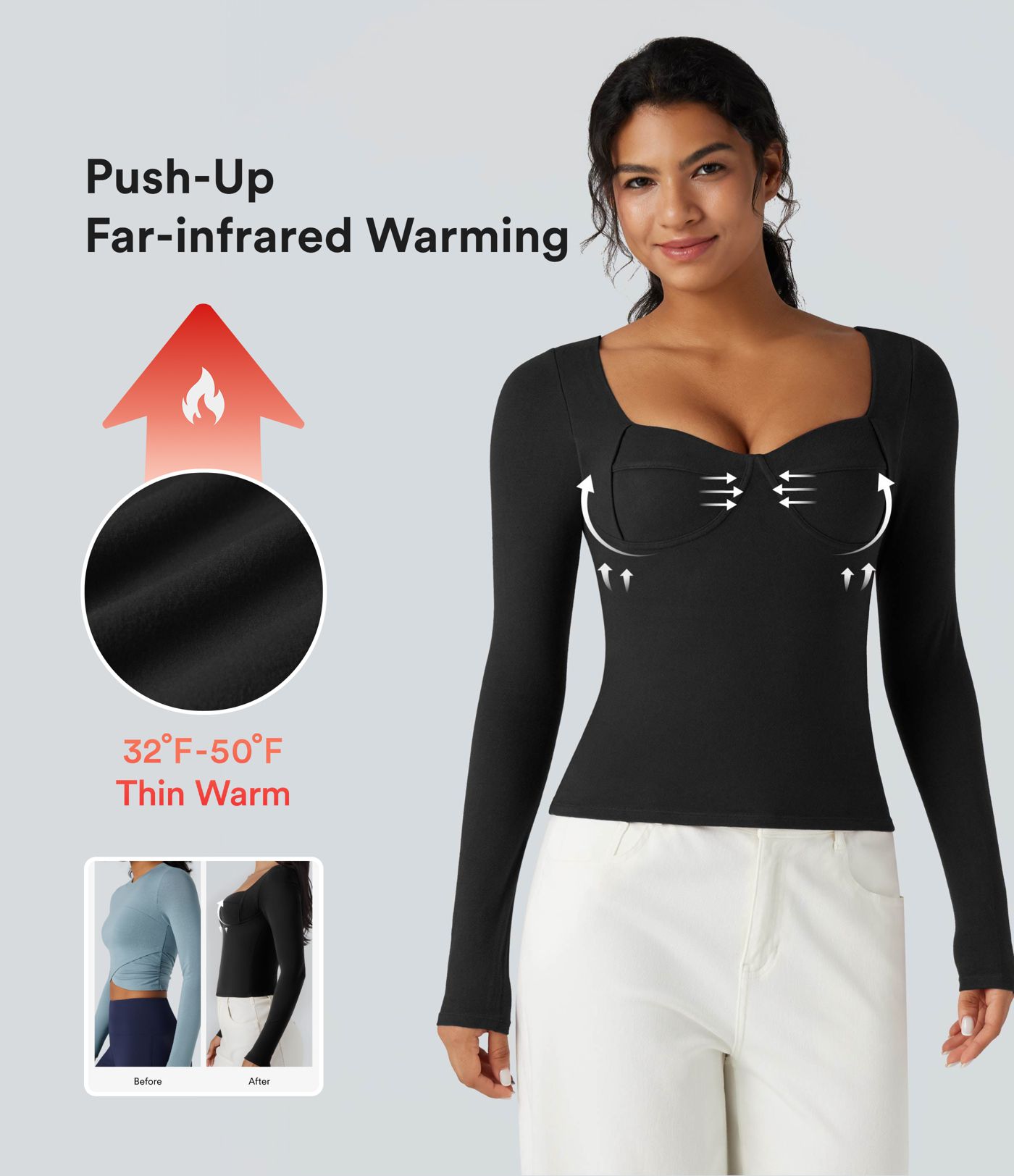 Halara HeatCore Sweetheart Neck Push-Up Long Sleeve Casual Warming Top A/B Cup