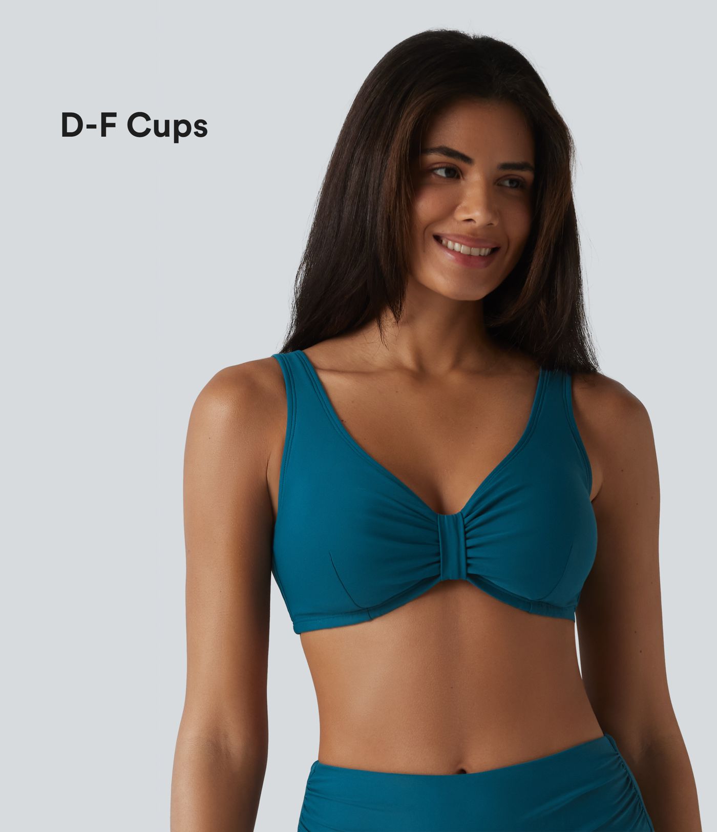 V Neck Sheen Bikini Top Swimsuit D-F Cups